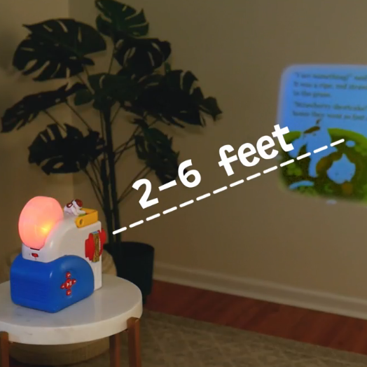 Displays projected text alongside narrated stories — supporting early reading skills and word recognition for preschoolers.