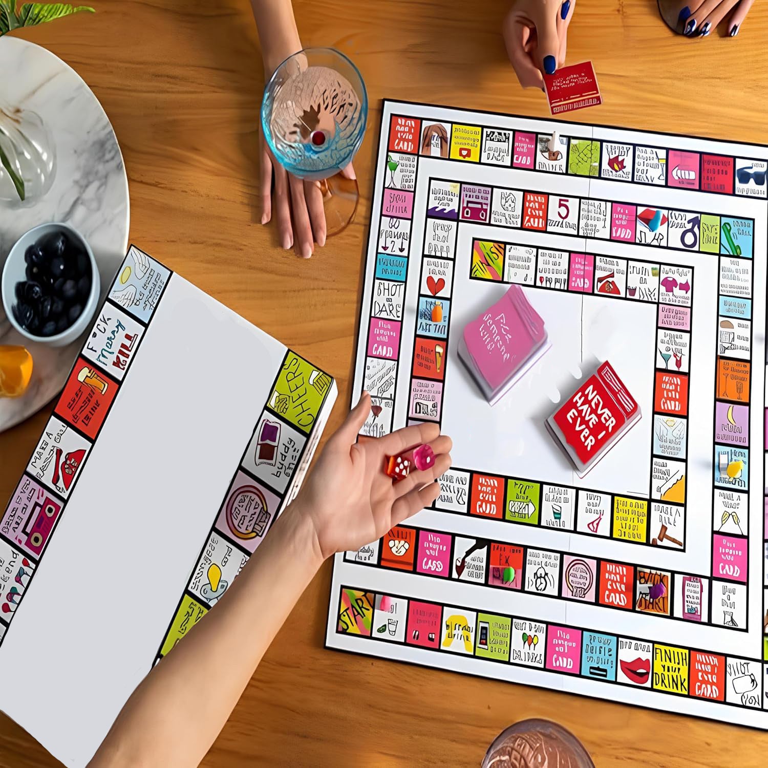 Packed with spaces made for calling out friends, silly dares, confessions, mini competitions, and drink challenges. Every turn brings something new.