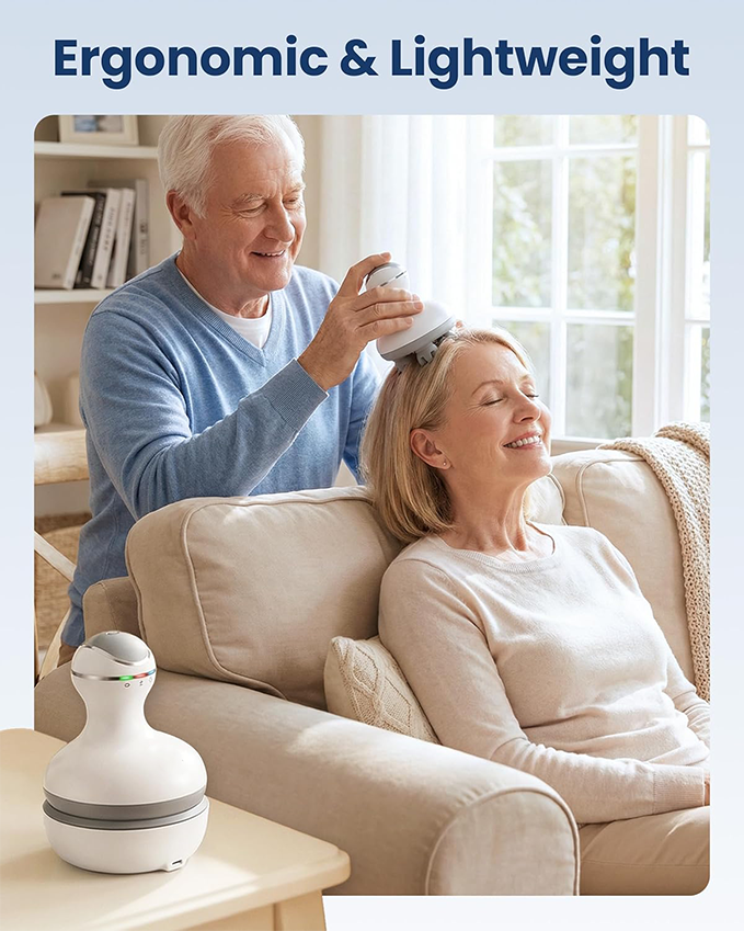 The cordless electric scalp massager is a relaxing device designed to provide deep kneading massage for improved scalp comfort and stress relief.