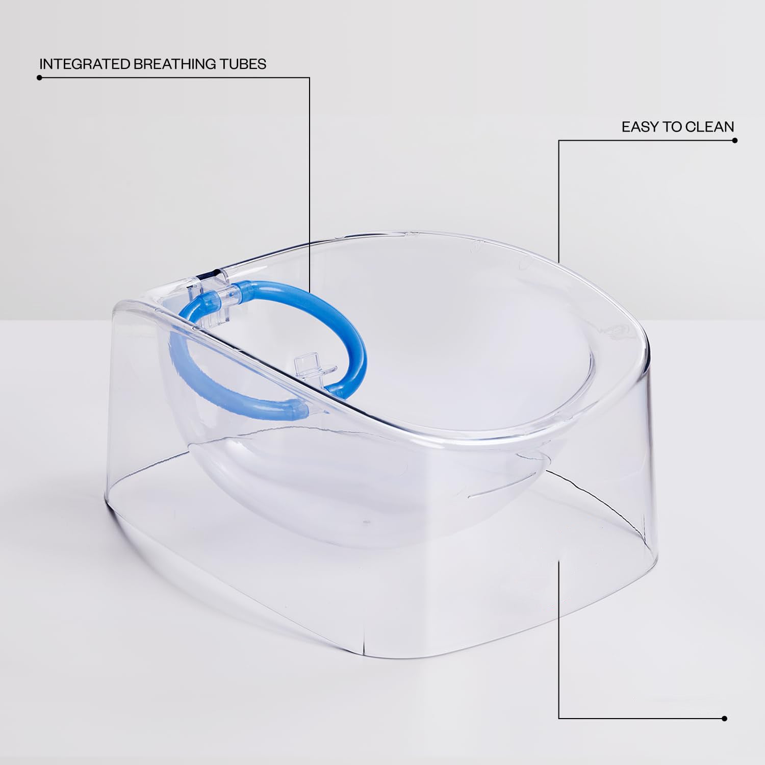 Integrated breathing tubes support long-term icy immersion. Reduces inflammation, under-eye bags, and puffiness.