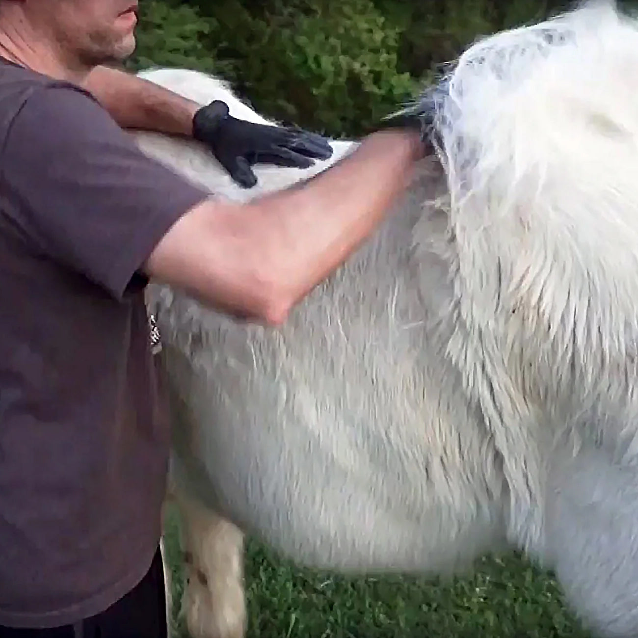 A soft grooming glove that animals love — horses, dogs, cats, and livestock enjoy the gentle massage without even realizing they’re being brushed or deshedded.