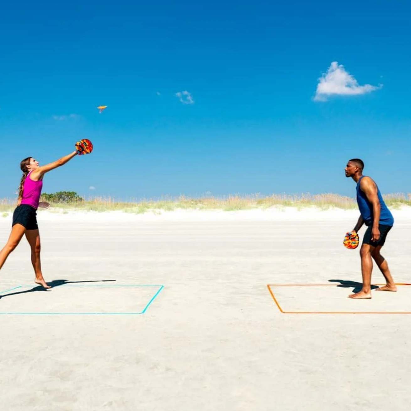 Easy active fun for two players. Buy additional sets for 4-player team games and doubles matches.